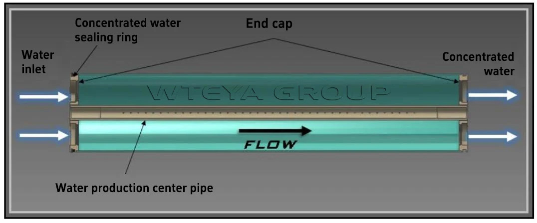 Struktura membrany odwróconej osmozy jest dość dokładna, a popularne komponenty obejmują zaślepkina obu końcach, rurki środkowe, pierścienie uszczelniające, membranę odwróconej osmozy i separator wody/produkcja wody. Składniki te współpracują ze sobą, aby woda pod ciśnieniem mogła przejść przez element filtrujący w celu udoskonalenia i ostatecznie wytworzenia czystej wody. Membrana odwróconej osmozy składa się zazwyczaj z trzech-struktura warstwowa: brak-tkanina, powłoka polisulfonowa, membrana usuwająca sól. W przypadkuniektórych specjalnych elementów membranowych powierzchnia folii jest pokryta modyfikowaną warstwą.